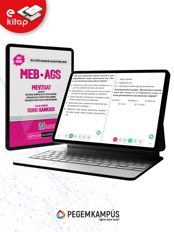 Sizin için büyük bir titizlikle hazırlanmış olan MEB-AGS MEVZUAT TAMAMI ÇÖZÜMLÜ SORU BANKASI kitabı resmî makamlardan yapılan açıklamalar göz önünde bulundurulup, akademik kaynak taraması ile sizlere sunulmuştur. Çalışmalarınızda baş ucu kaynak niteliği taşıyan soru bankamızın, konu anlatım kitabımızı aldıktan sonra çözülmesi tavsiye edilmektedir.